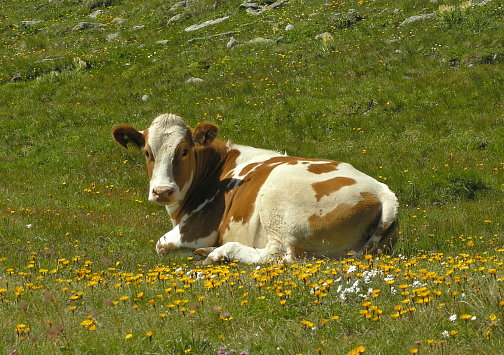 25.07.08: Den Rindern gefällt es hier auf gut 2700 m; würzige Kräuter und frisches Gras; . . . Rindvieh_Ferien ! |