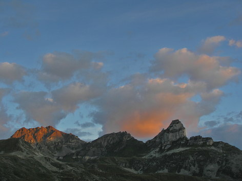 11.08.08: Drüben Meidspitz im Morgenlicht . Wir laufen früh zur Turtmannhütte . | |