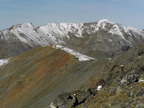 16.09.08: Augstbordgrat und Dreizehntenhorn . Auf den Schattenhängen liegt noch Schnee . |