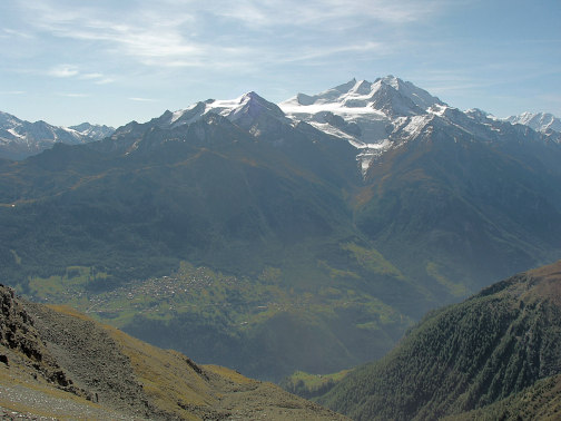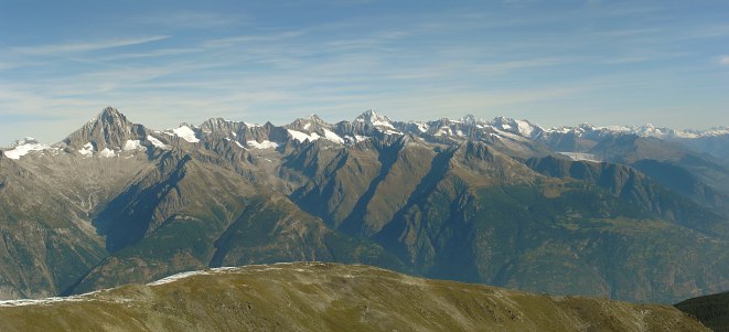 16.09.08: Im Norden über dem Rhonetal Bietschhorn, Bietschtal, Baltschiedertal, Aletschtschgletscher . | |