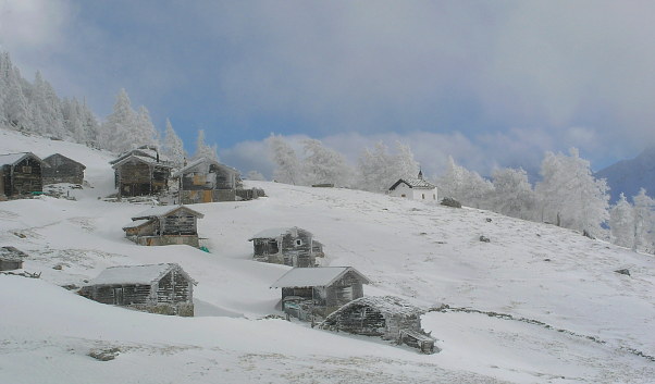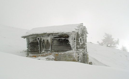 23.11.08: Der Schneesturm der Vortage hat die Holzwände der Finnu_:Hütten mit Schnee verklebt. Es ist stark verblasen und ab Chastler muss ich ordentlich spuren . | ||||||||||||||||||||||||||||||||||||||||||||||||||||||||||||||||||||||||||||||||||||||||||||||||||||||||