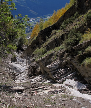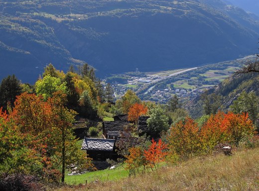 04.10.2015: Weiler Milachra westlich Ausserberg. * Weiter möchte auf dem *direkten* Pfad durch die Schlucht hinauf nach Leiggern. * Doch die Unwetter im Frühsommer haben diesen Pfad unpassierbar gemacht: Die Leitern sind zerschlagen, sie hängen unerreichbar hoch, bis auf den nackten Fels ist alles ins Tal gespült worden. * So laufe ich zu den Kirschbäumen auf den Trockenwiese. | ||||||||||||||||||||||||||||||||||||||||||||||||||||||||||||||||||||||||||||||||||||||||||||||||||||||||