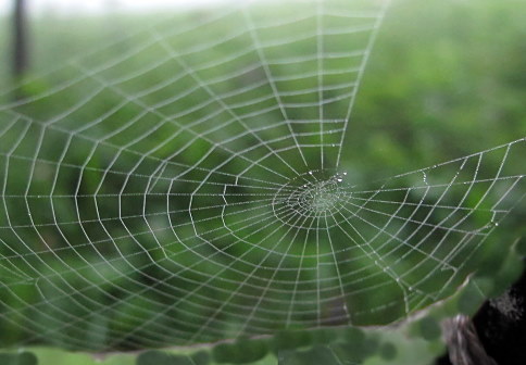 31.07.14: Am Dorfrand, keine Spur von Sonne, durch den Wald hinauf an den Kapellen vorbei . Spinnweben im feuchten Gras. | |
