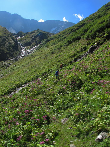 06.09.2014: Noch sind Rinder auf der Merezebach-Alpe, im Sommer waren sie auch oben auf Sädel . -> Der gut markierte Pfad geht rechts hoch durch Erlengestrüpp. -> | ||||||||||||||||||||||||||||||||||||||||||||||||||||||||||||||||||||||||||||||||||||||||||||||||||||||||