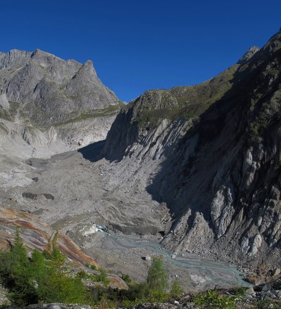 23.09.2014: Der Fieschergletscher ist stark zurück gegangen. Der markierte Pfad auf dem Rücken weiter hinauf ist schöner und sicherer als der (verbotene) Weg auf der Wasserleite, wie er bei SwissMap_Online eingezeichnet ist. | |