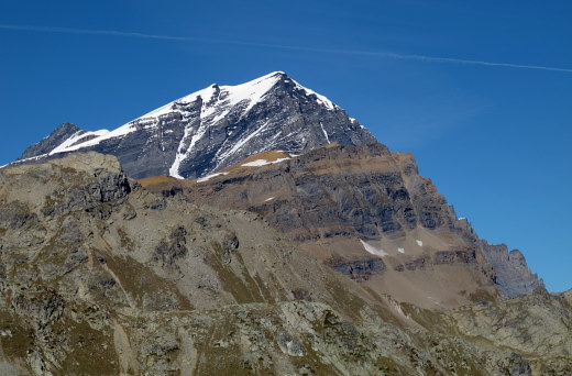 27.09.2014: von weiter unten: noch einmal das Bietschhorn, mit kleinen Schönwetterwolken. | |