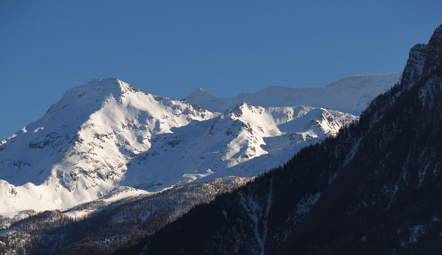16.01.2020: In der Nachmittagssonne Wasenalp, Wasenhorn, darüber im Schatten Monte Leone . | |