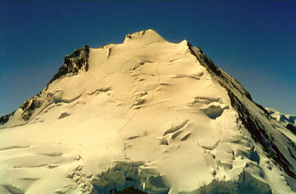 noch vor Tagesanbruch waren wir von der Domhütte aufgestiege und schauen nun hinüber zum Weisshorn in der Morgensonne. | |