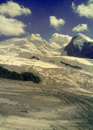 Im Juli 1962 war Volkher mit J.S. und L.K. das erste Mal in den Walliser Bergen in Ferien. Unbekümmert stiegen wir aufs Hohberghorn, über den Festigrat auf den Dom; waren auf verschiedenen Gipfeln im Monte Rosa, auf dem Castor und fast auf dem Horu. Fotos: Kodak Retina 1a / Agfachrom 50; eingescannt nach 42 Jahren; viele der Fotos sind in den Jahren ausgeblichen.. |