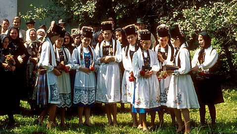 festliche Trachten ; nach dem Gottesdienst in Retis / Siebenbürgen. |