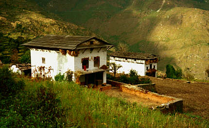 im November 1977 waren Rosmarie und Volkher in Nepal. Die Hauptroute führte von Barabishe (nörlichlich von Kathmandu) durch den Rolwaling über den Trashi Lapsta nach Namche Basar; damals kamen in den Riolwaling nur wenig Fremde. Fotos: Dia Agfachrom mit Konika SLR und Rollei 35 ¦ Neg. Agfacolor CNS2 mit Rollei 35S; eingescannt also 27 Jahre später; Fotomöglickkeiten und das Land Nepal haben sich wohl in dieder Zeit sehr geändert |